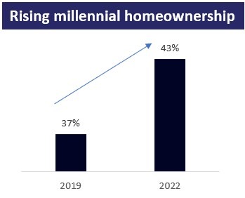We are expecting this rate to continue climbing over the next ten years, ultimately landing in the same area that the broader homeownership rate of high 60s%. This will provide a nice boost to repair and remodeling expenditures.